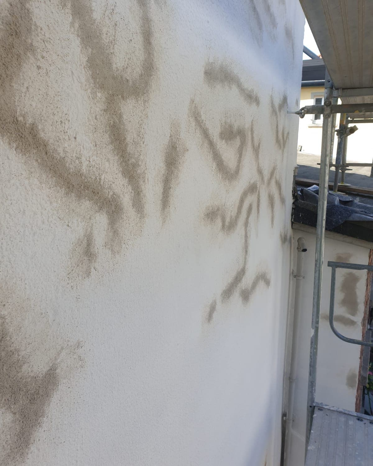 Feuchte Stellen oder weiße Ausblühungen im Sockelbereich sind ein Warnsignal. Hier ist wichtig zu klären, woher die Feuchtigkeit kommt und ob ein geeigneter Aufbau nötig ist, bevor wieder beschichtet wird.