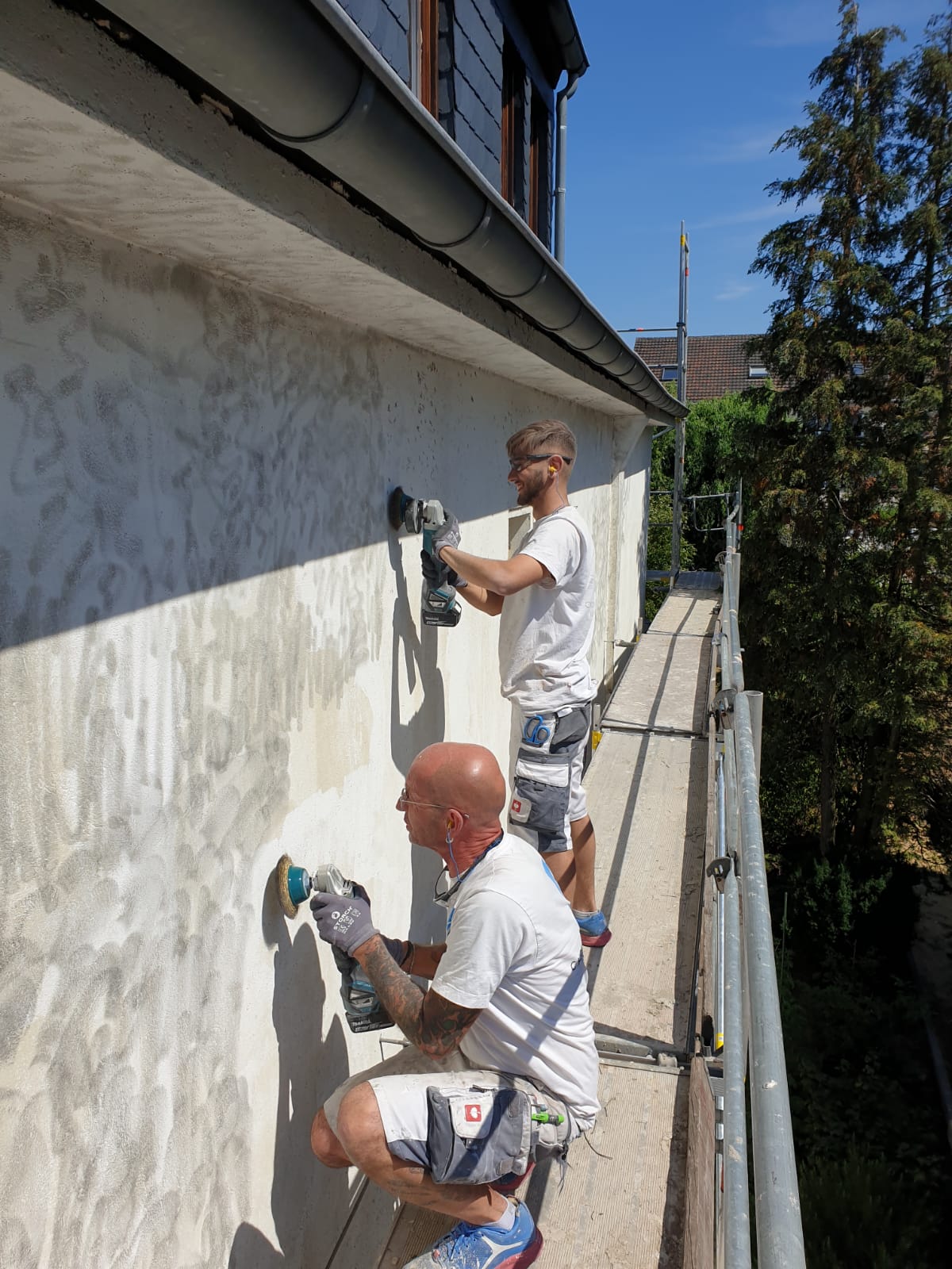 Das hängt von Höhe und Zugänglichkeit ab. Für sauberes Arbeiten und Sicherheit ist ein Gerüst oft sinnvoll. Wir klären das im Vor-Ort-Termin.